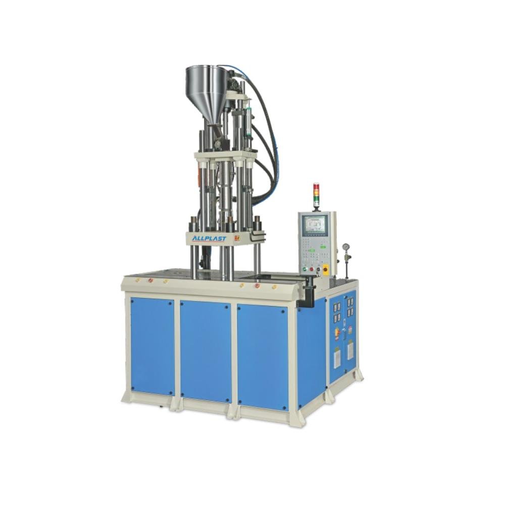 Clamping force ranges from 15 to 250 tons with a four-column vertical clamping system and programmable double sliding, making it ideal for insert moulding applications. The machine is equipped with a high-end PLC & HMI for easy control, an energy-efficient high-tech system, and advanced hand protection safety features.