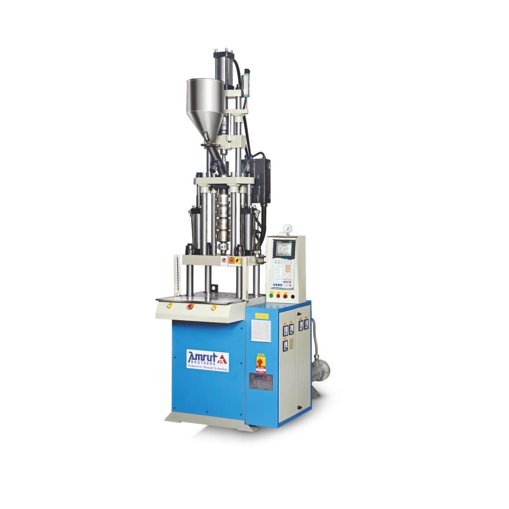 The machine offers a clamping force of 15–250 tons with a four-column vertical clamping system and screw-type injection. Its large L/D ratio ensures uniform melt and smooth operation. It features a fully microprocessor-controlled, energy-efficient technology, and built-in hand safety protection.